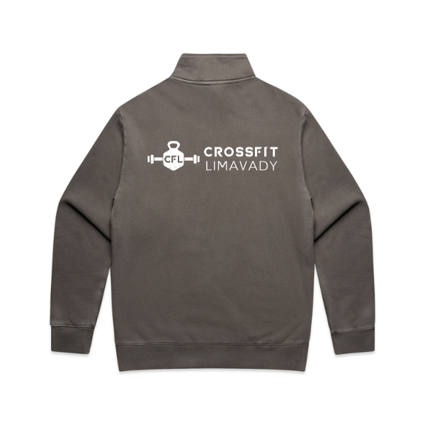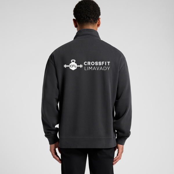 Relax Faded Half Zip, a relaxed fit top made from mid-weight 320 GSM fabric with 80% cotton and 20% recycled polyester. It features a garment dyed finish, mock neck, silver SBS half zip, and ribbed cuffs and hem.