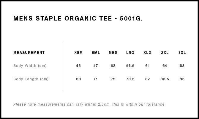 Staple Organic Tee, crafted from 100% combed organic cotton. Featuring a regular fit and mid weight 180 GSM fabric, it includes neck ribbing, shoulder-to-shoulder tape, and double needle hems. It’s pre-shrunk for minimal shrinkage.